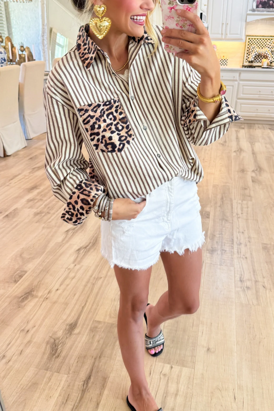 Brown Leopard Print Stripe Long Sleeve Top